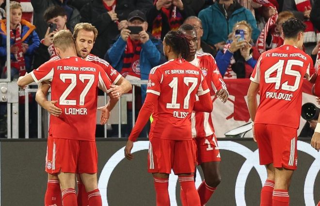雷速體育10月23日訊 英格蘭前鋒哈里·凱恩又進(jìn)球了。歐冠聯(lián)賽階段第3輪,拜仁慕尼黑主場4-0大勝比利時(shí)球隊(duì)布魯日,延續(xù)本賽季全勝勢頭。該場對決中,凱恩第14分鐘接應(yīng)萊默爾橫傳