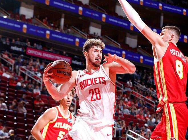 但還有一支球隊更有趣,就是老鷹。休賽期老鷹交易來波爾津吉斯,先簽后換從森林狼得到亞歷山大沃克,包括簽下肯納德,搭配原有的杰倫約翰遜+狀元里薩謝+丹尼爾斯這些天賦年輕人,整體實力不容小覷。但開賽前四場比賽,也就是球隊老大特雷楊健康狀態下出戰的比賽,老鷹1勝3負,特雷楊場均20.8分9.5助攻,第五場比賽對陣籃網打了7分鐘,結果遭遇右膝內側副韌帶扭傷,至少休息四周。從特雷楊出戰的140分鐘來看,他的效率很一般,兩項命中率低至37%+19%。特雷楊當下合同還剩2年,薪資分別為4600萬+4897萬(帶球員選項)。