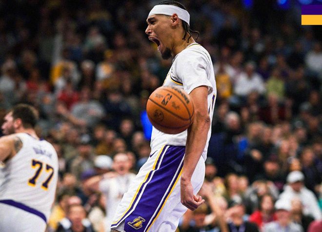 詹姆斯快攻扣籃止血后,翻身后仰跳投再中,此后反擊一條龍上籃!中段兩隊陷入拉鋸戰,直到節末八村塁三分球打破僵局,半場湖人62-55爵士。湖人記者確認,艾頓因右膝挫傷回歸成疑。第三節海斯頂替首發,喬治追著老詹扔三分球,米哈伊柳克也續上三分,爵士很快反超。湖人進攻啞火,里夫斯單打杯水車薪,后半段老詹下場后,東契奇和里夫斯單打抹平分差,詹姆斯接球掄扣,三節打完,湖人84-81爵士。第四節老詹快攻繼續拉桿上籃,隨后成功單防米哈伊柳克。