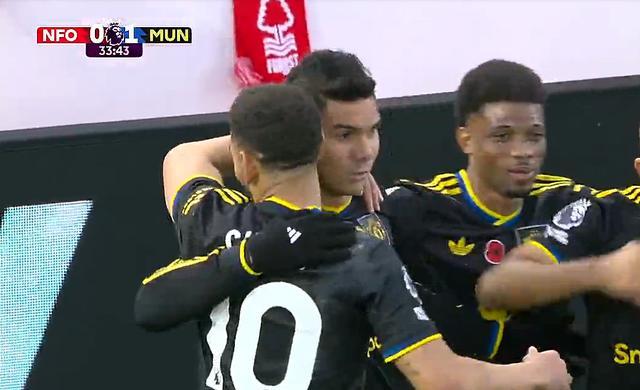 來(lái)到第34分鐘,B費(fèi)開(kāi)出角球,卡塞米羅頭球破門(mén),曼聯(lián)打破僵局,0-1!